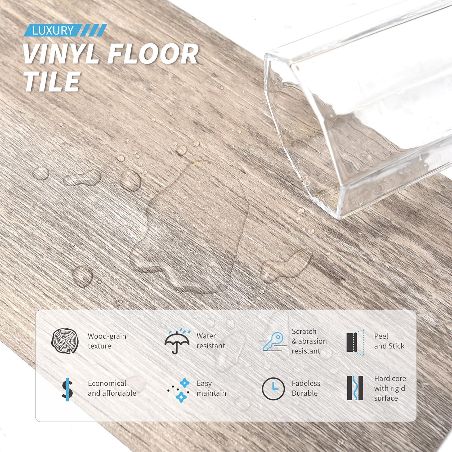 Art3d Peel and Stick Floor Tile Vinyl Wood Plank 12-Pack 18 Sq.Ft, Aged Wood, Rigid Surface Hard Core Easy DIY Self-Adhesive Flooring(Samples)