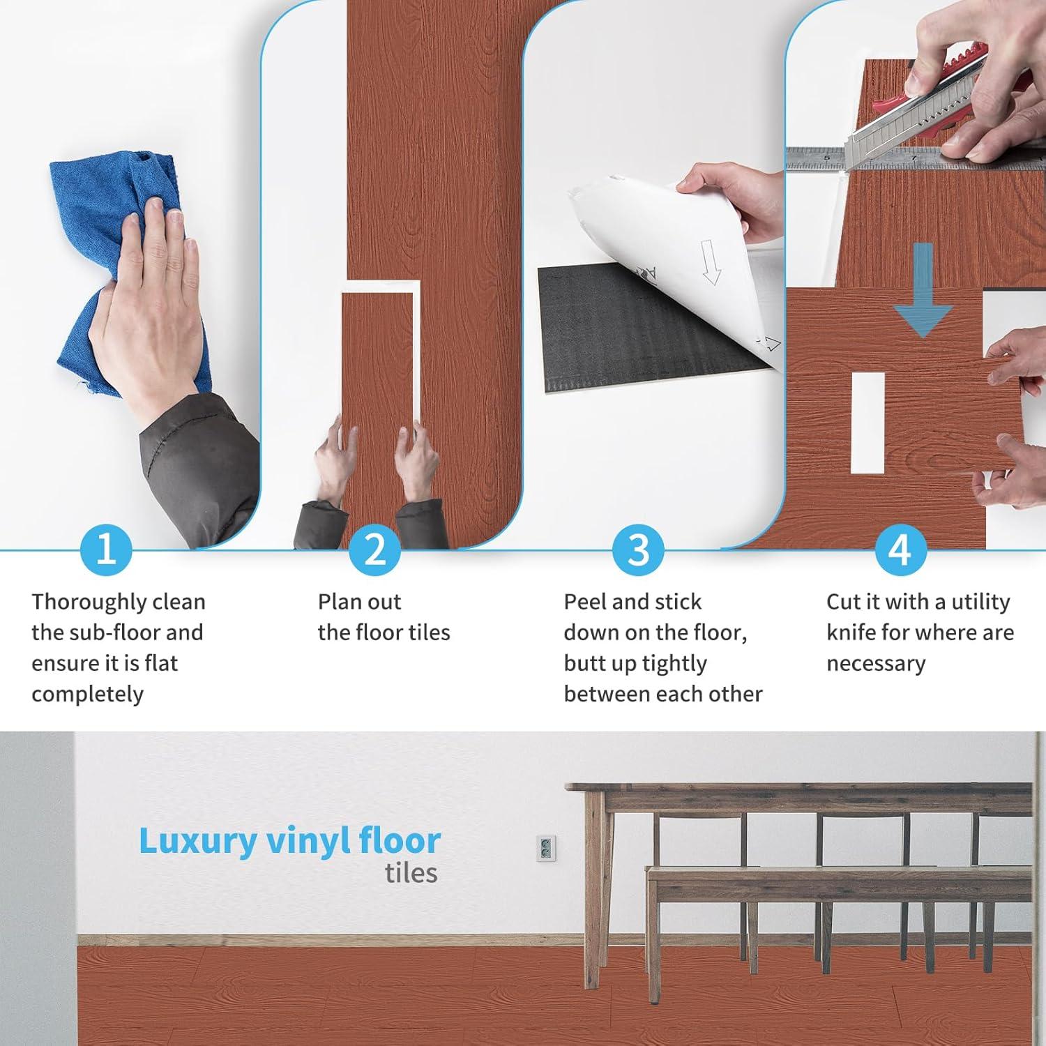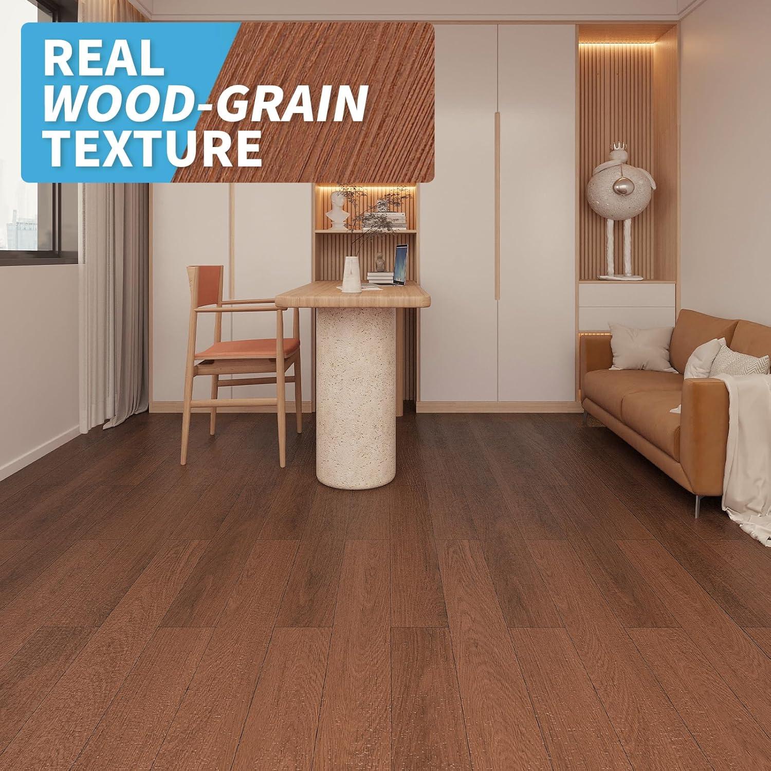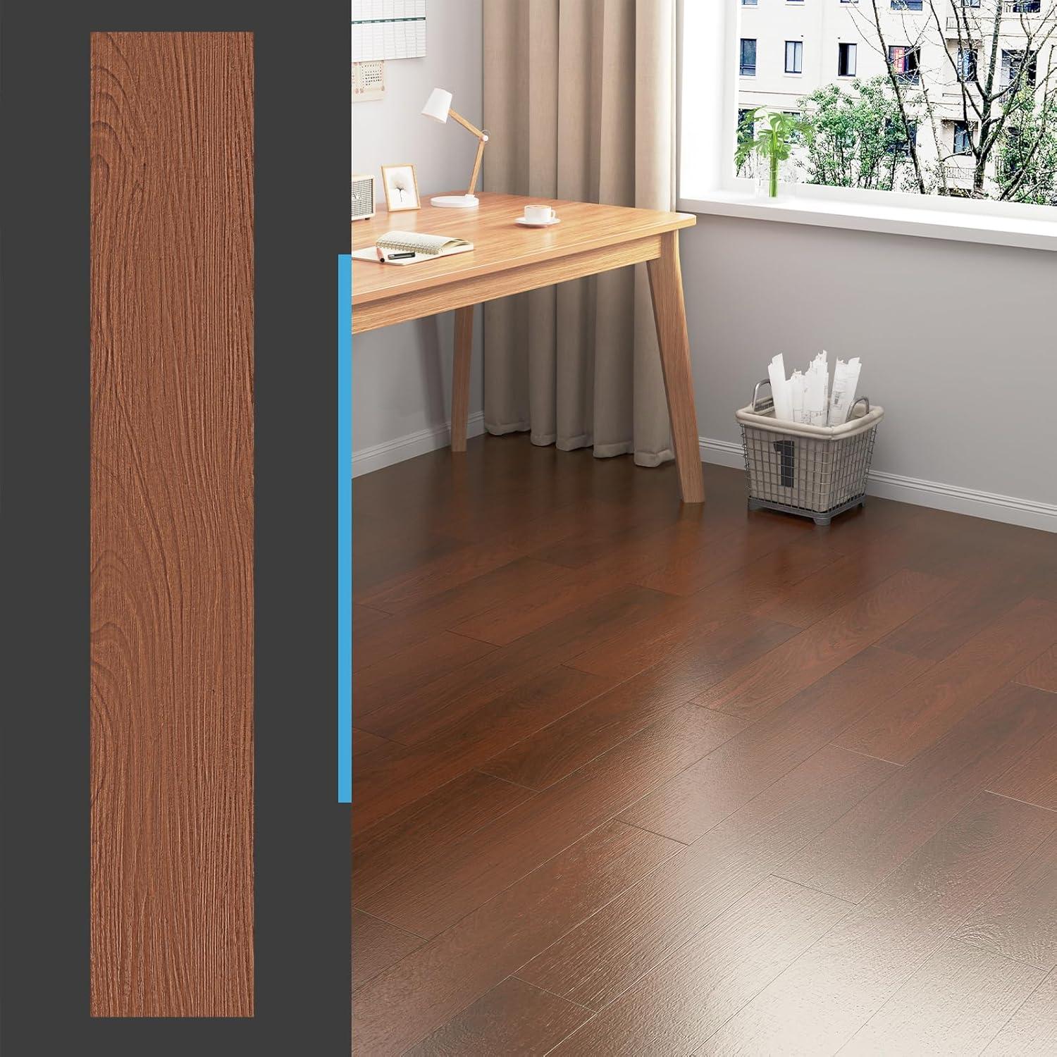Art3d 36-Pack Peel and Stick Vinyl Plank Flooring Tile, 54 Sq. Ft Self-Adhesive Floor Tiles with Natural Wood Texture for Living Room Bedroom RV, Ash Brown(Bubinga)