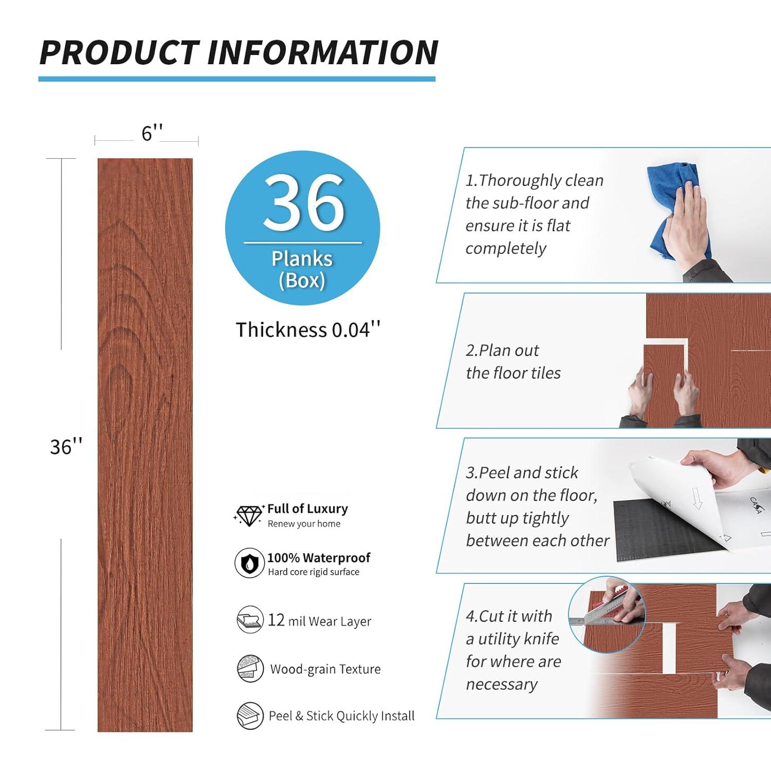 imageArt3d 36Pack Peel and Stick Vinyl Plank Flooring Tile 54 Sq Ft SelfAdhesive Floor Tiles with Natural Wood Texture for Living Room Bedroom RV Ash BrownBubinga