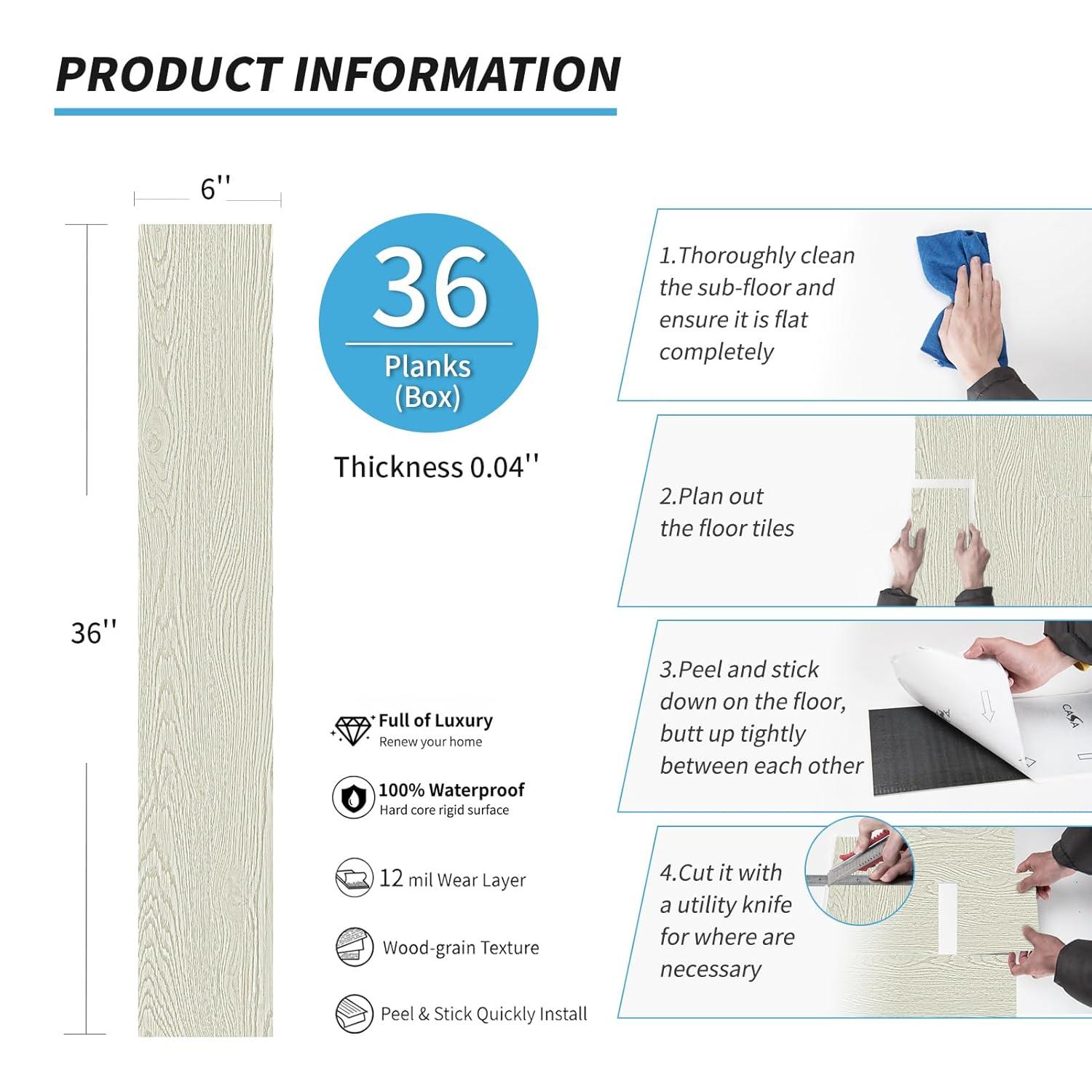 Art3d 36-Pack Peel and Stick Vinyl Plank Flooring Tile, 54 Sq. Ft Self-Adhesive Floor Tiles with Natural Wood Texture for Living Room Bedroom RV, Ash Brown(White Oak)