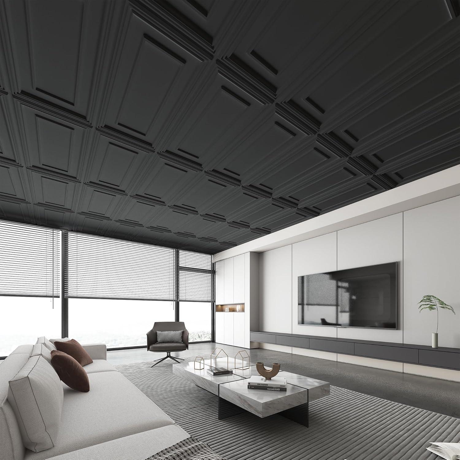 Versatile for Any Room: Suitable for ceiling applications in kitchens, living rooms, garages, basements, bathrooms, and more. These decorative ceiling tiles seamlessly fit both residential and commercial interiors