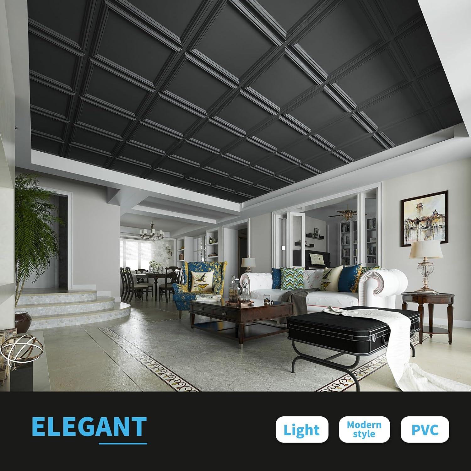 Art3d Drop Ceiling Tiles 48×24, Decorative PVC Ceiling Panels, Waterproof Rustproof and Durable 12-Pack, Glue Down, Rectangular Black(Square White)