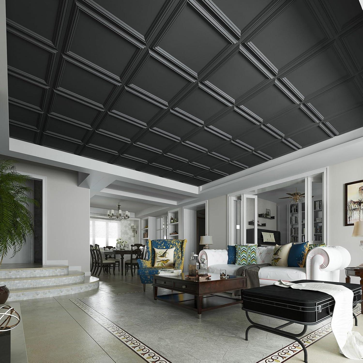 imageArt3d Drop Ceiling Tiles 48x24 Decorative PVC Ceiling Panels Waterproof Rustproof and Durable 12Pack Glue Down Rectangular BlackSquare Black