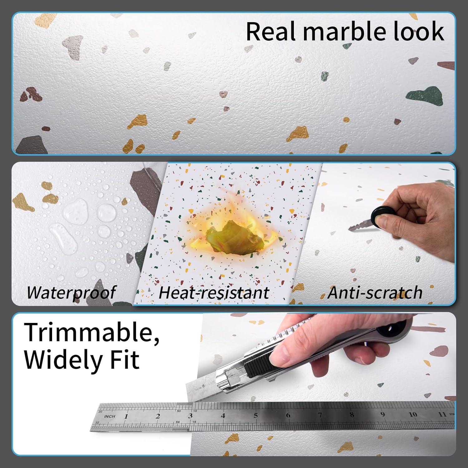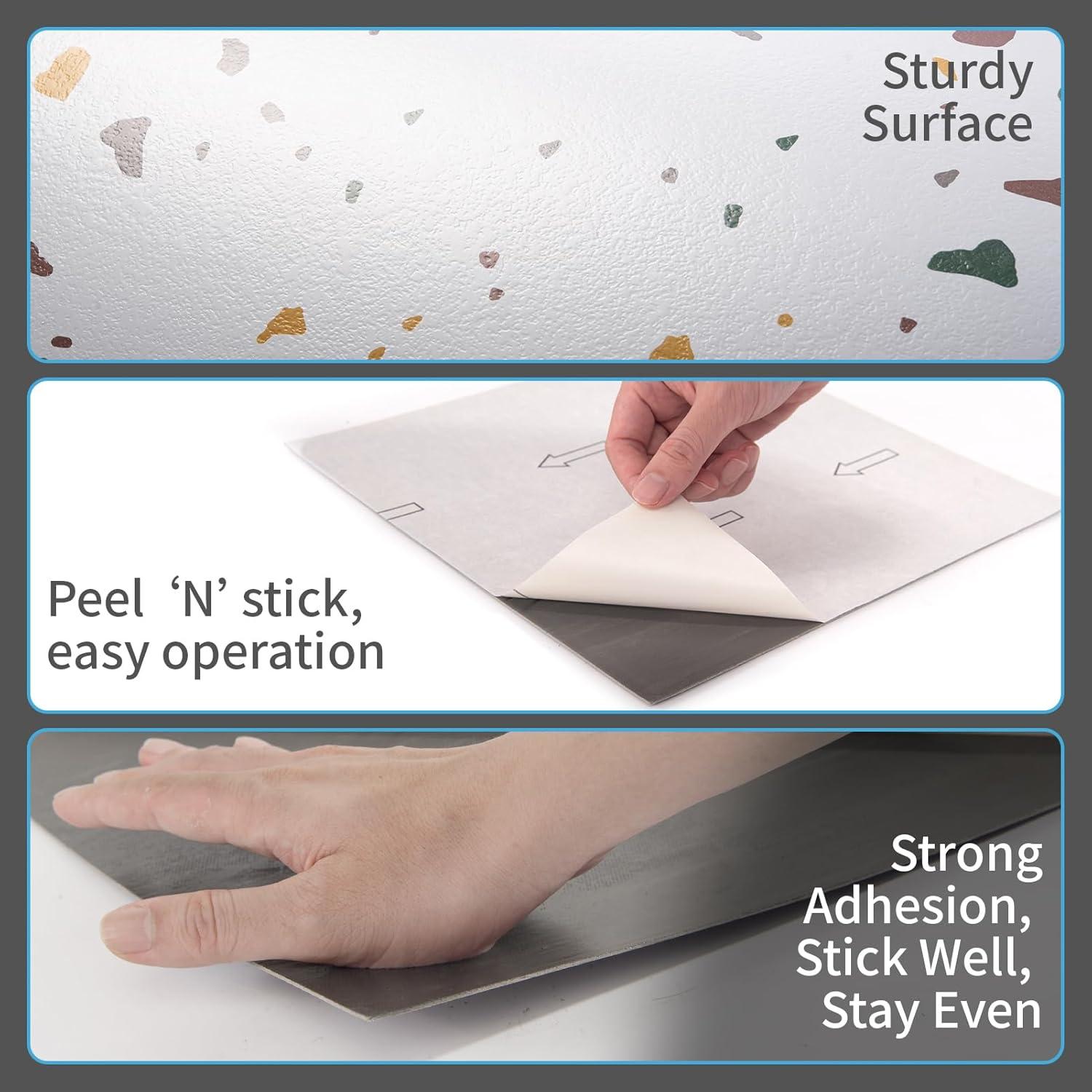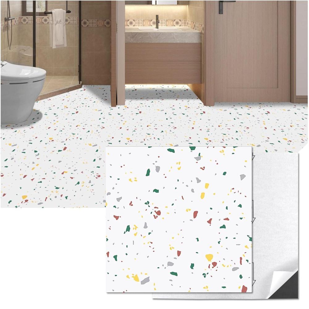 Art3d Peel and Stick Floor Tile, 10-Pack 12 x 12in. Covers 10 Sq.ft, Waterproof Vinyl Flooring Tiles Self Adhesive for Kitchen, Bathroom & Bedroom – White Grey Vein Marble(Modern Terrazzo)