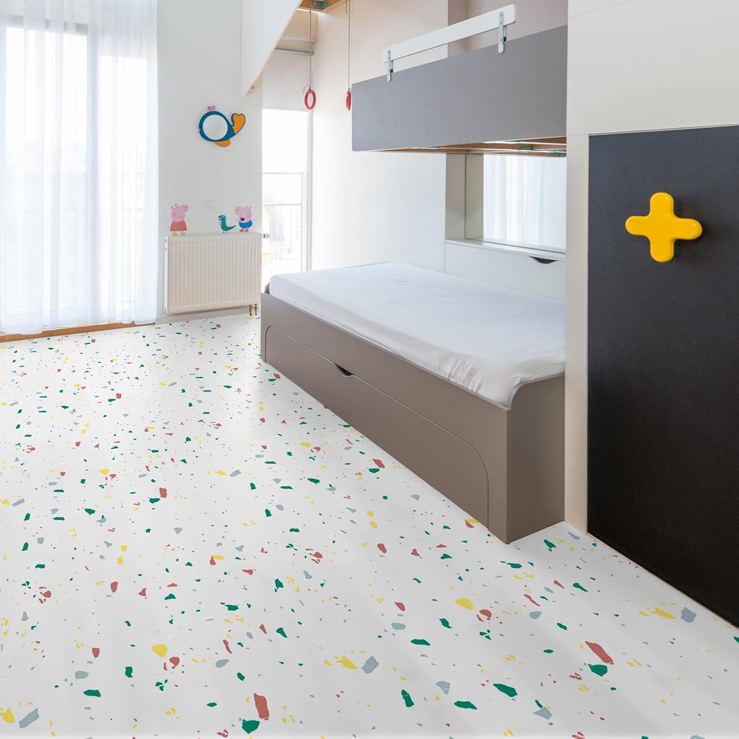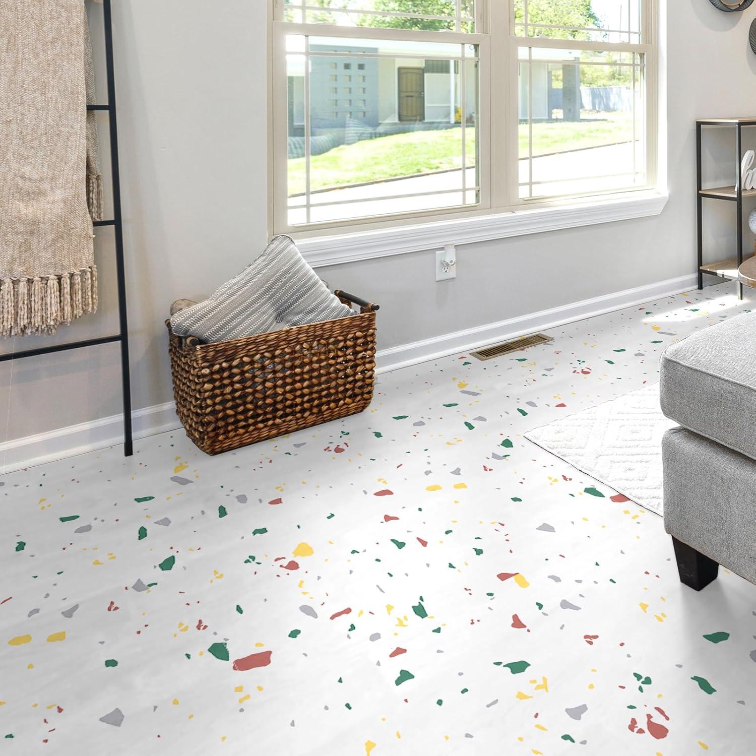 Art3d Peel and Stick Floor Tile, 10-Pack 12 x 12in. Covers 10 Sq.ft, Waterproof Vinyl Flooring Tiles Self Adhesive for Kitchen, Bathroom & Bedroom - White Grey Vein Marble(Modern Terrazzo)