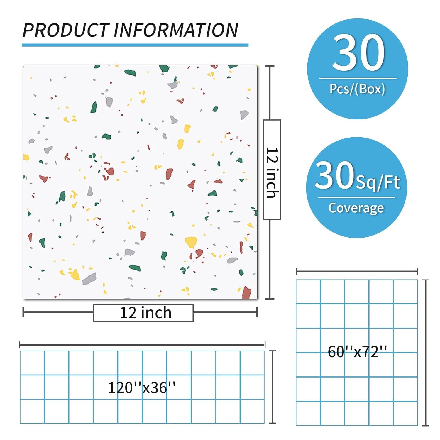 imageArt3d Peel and Stick Floor Tile 10Pack 12 x 12in Covers 10 Sqft Waterproof Vinyl Flooring Tiles Self Adhesive for Kitchen Bathroom amp Bedroom  White Grey Vein MarbleModern Terrazzo