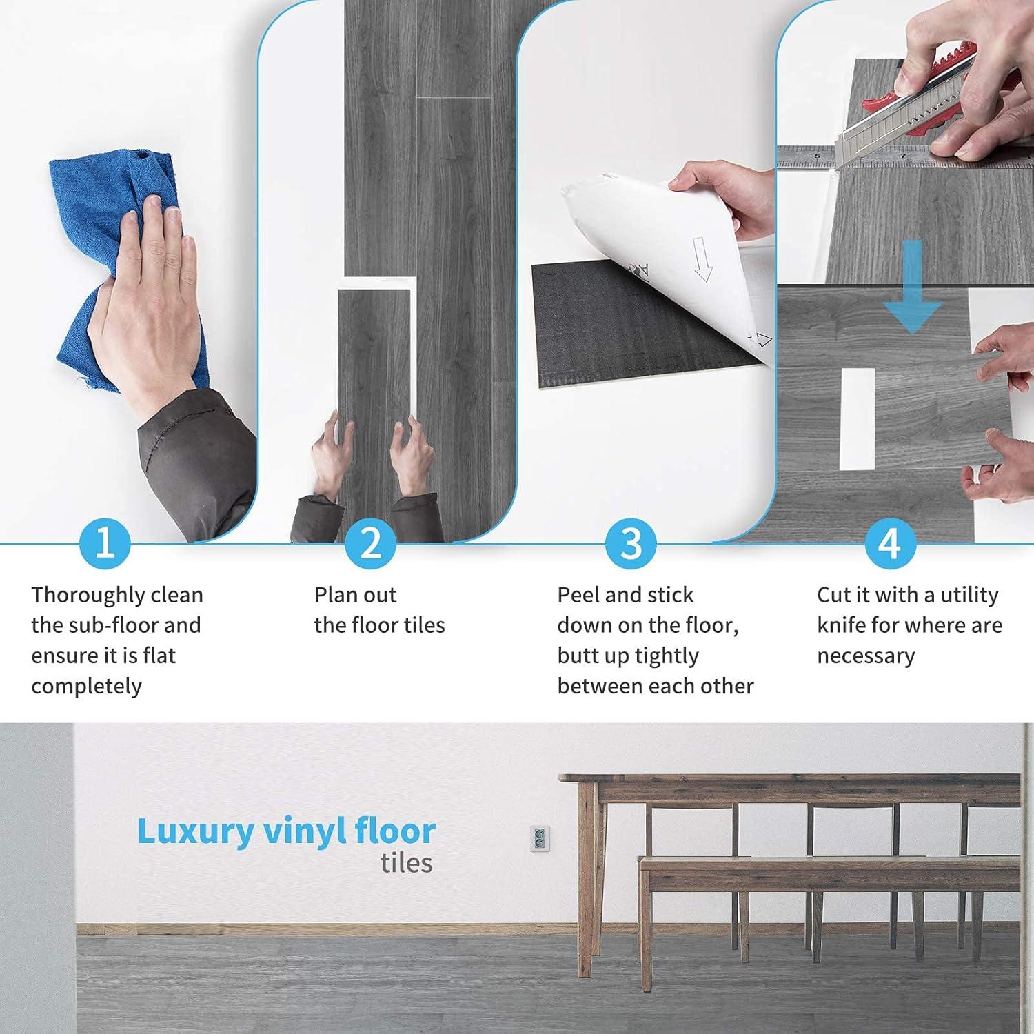 Easy DIY – Just peel and stick down on a flat floor for installation, no power tools, no experience, no glue, no accessoies.