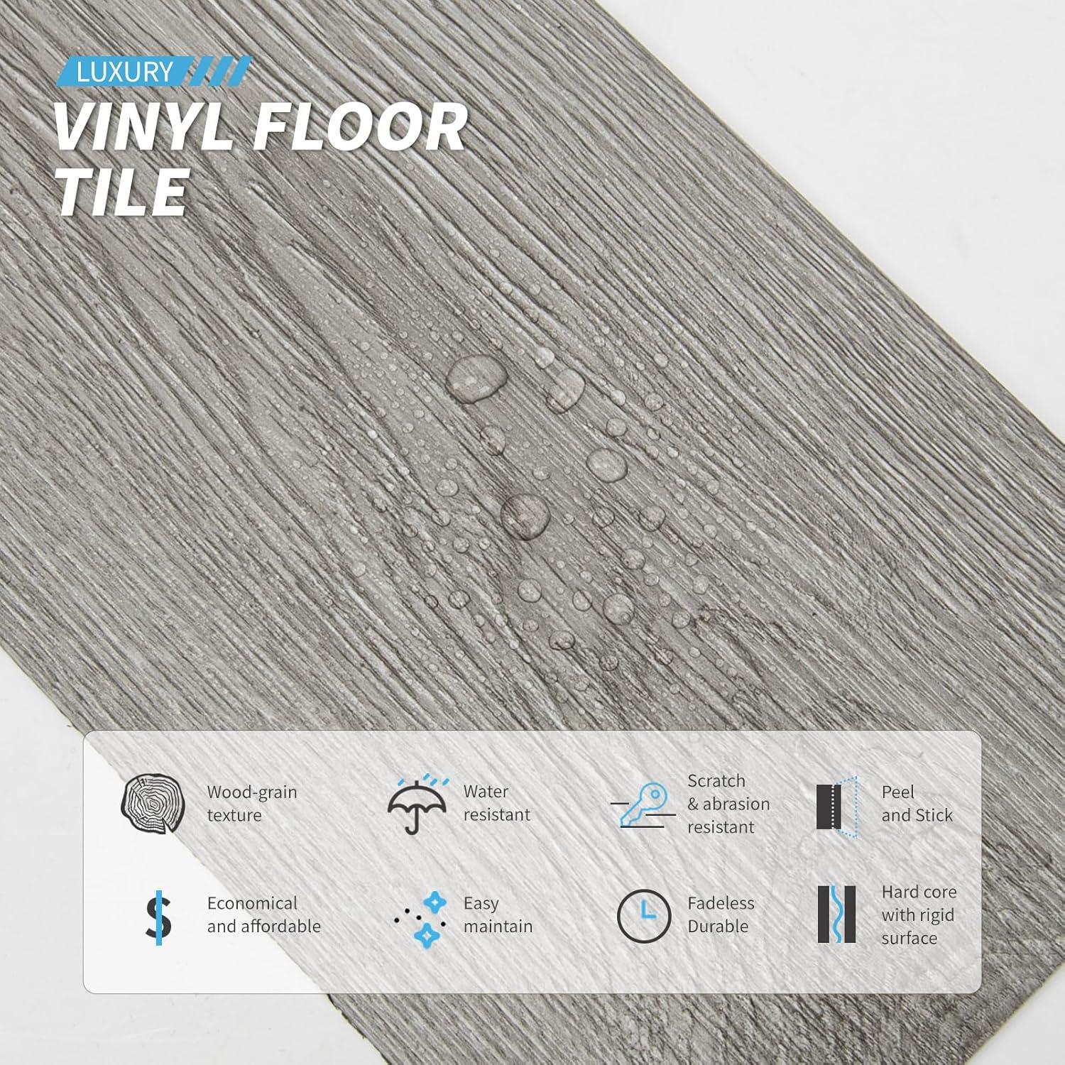 Art3d Peel and Stick Floor Tile Vinyl Wood Plank 12-Pack 18 Sq.Ft, Aged Wood, Rigid Surface Hard Core Easy DIY Self-Adhesive Flooring(Dusty Grey)
