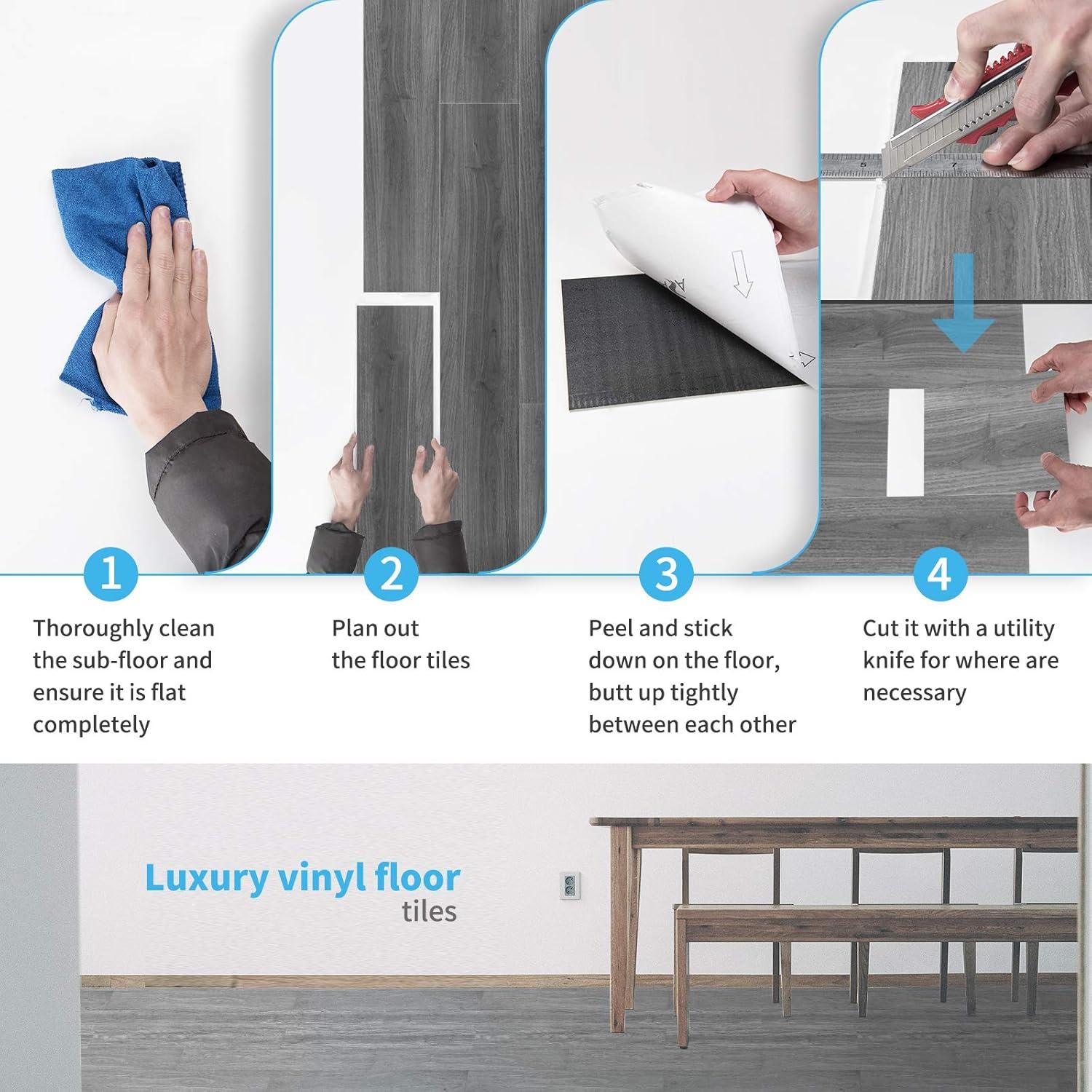 Art3d Peel and Stick Floor Tile Vinyl Wood Plank 12-Pack 18 Sq.Ft, Aged Wood, Rigid Surface Hard Core Easy DIY Self-Adhesive Flooring(Deep Grey)