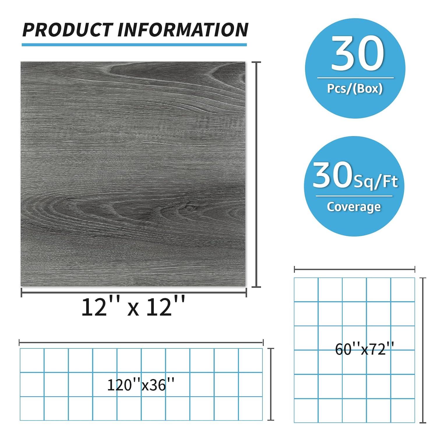 Premium Quality – Art3d Peel and Stick Vinyl Flooring Tiles are crafted with the high quality vinyl, ensuring durability and longevity. Each pack contains 30 tiles, each measuring 12×12 inches, providing a total coverage of 30 square feet – ideal for revitalizing any space