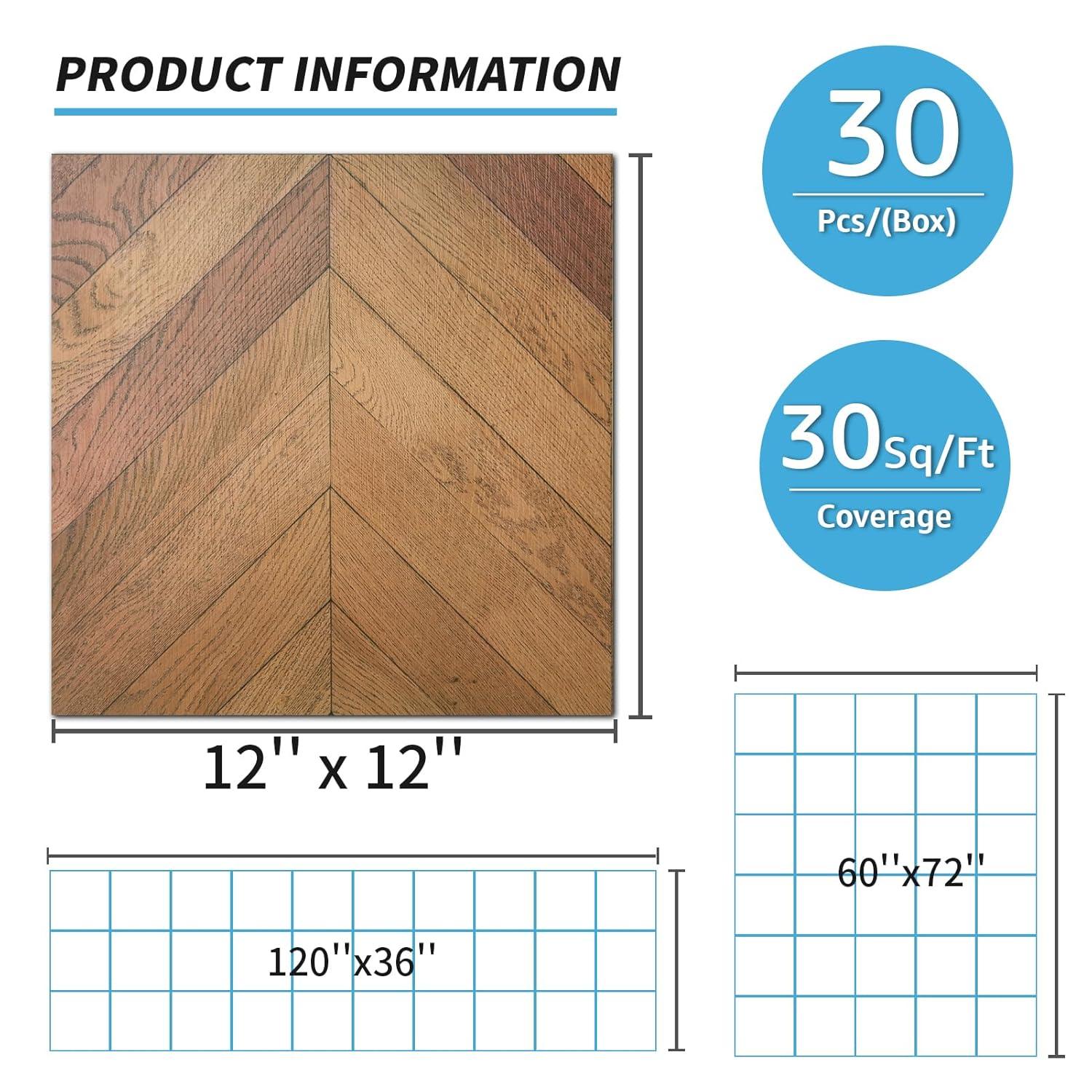 imageArt3d Peel and Stick Vinyl Floor Tiles 30Pack 12 x 12 inch Self Adhesive Waterproof Flooring Wood Planks for Kitchen Dining Room Bedrooms Cover 30 SqFt Grey OakHerringbone  Brown