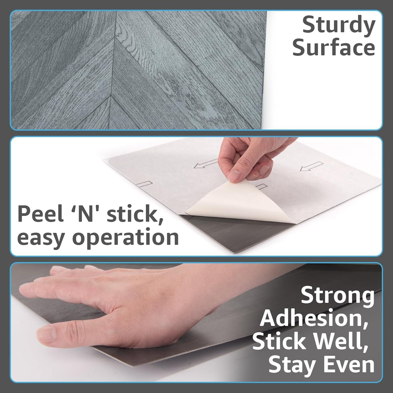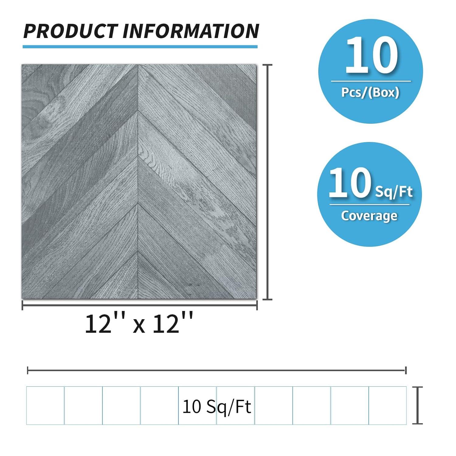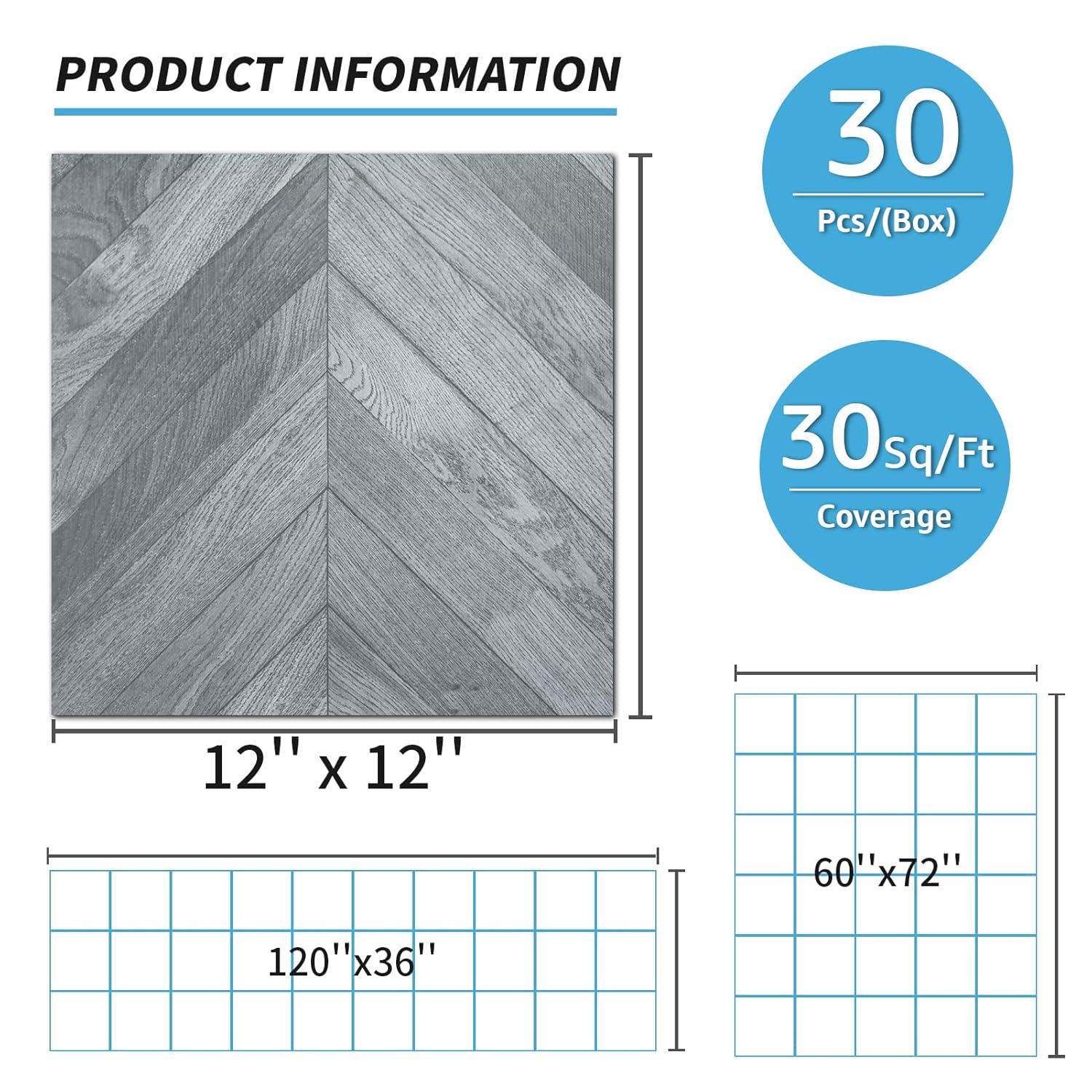 Art3d Peel and Stick Vinyl Floor Tiles 30-Pack 12 x 12 inch, Self Adhesive Waterproof Flooring Wood Planks for Kitchen, Dining Room, Bedrooms, Cover 30 Sq.Ft, Grey Oak(Herringbone - Grey)