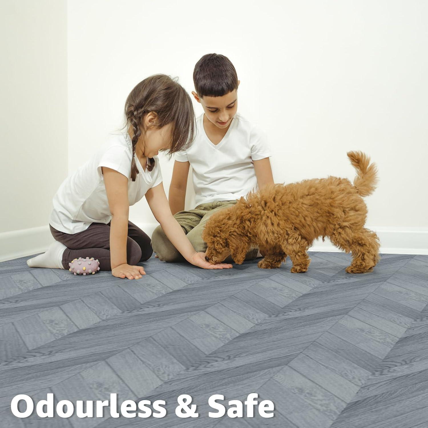 Art3d Peel and Stick Vinyl Floor Tiles 30-Pack 12 x 12 inch, Self Adhesive Waterproof Flooring Wood Planks for Kitchen, Dining Room, Bedrooms, Cover 30 Sq.Ft, Grey Oak(Herringbone – Grey)