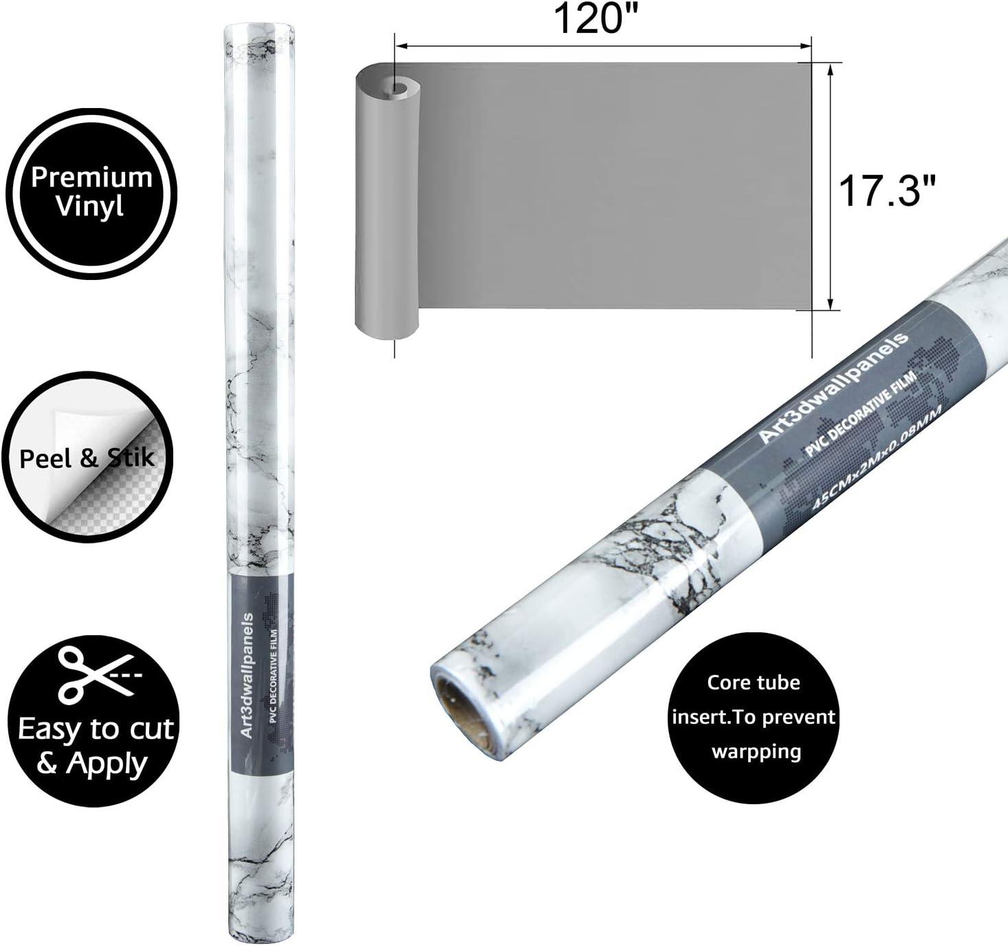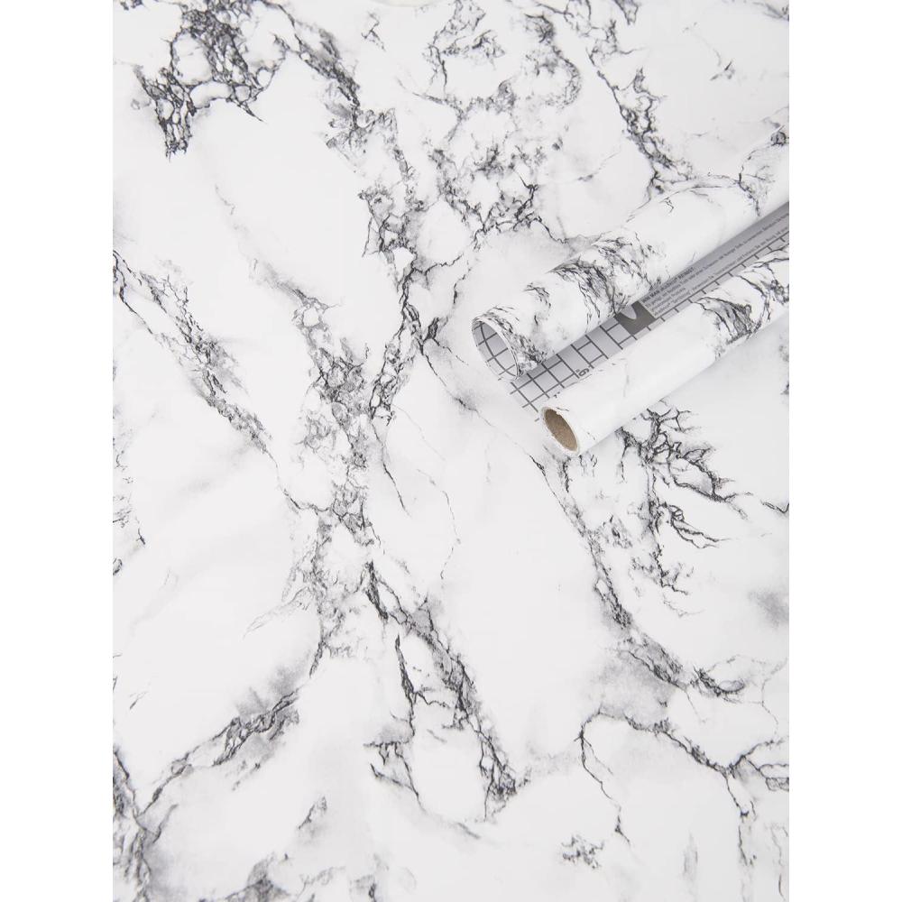 Art3d Self-Adhesive Grey Marble Wallpaper, Matt (17.3″x200″)(Black/White)